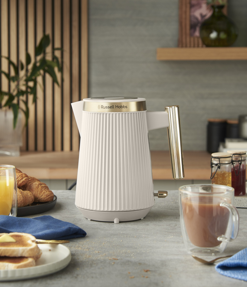 A barázdált külső és a szálcsiszolt aranyszínű acél díszítések igazi stíluselemként emelik ki a vízforralót.