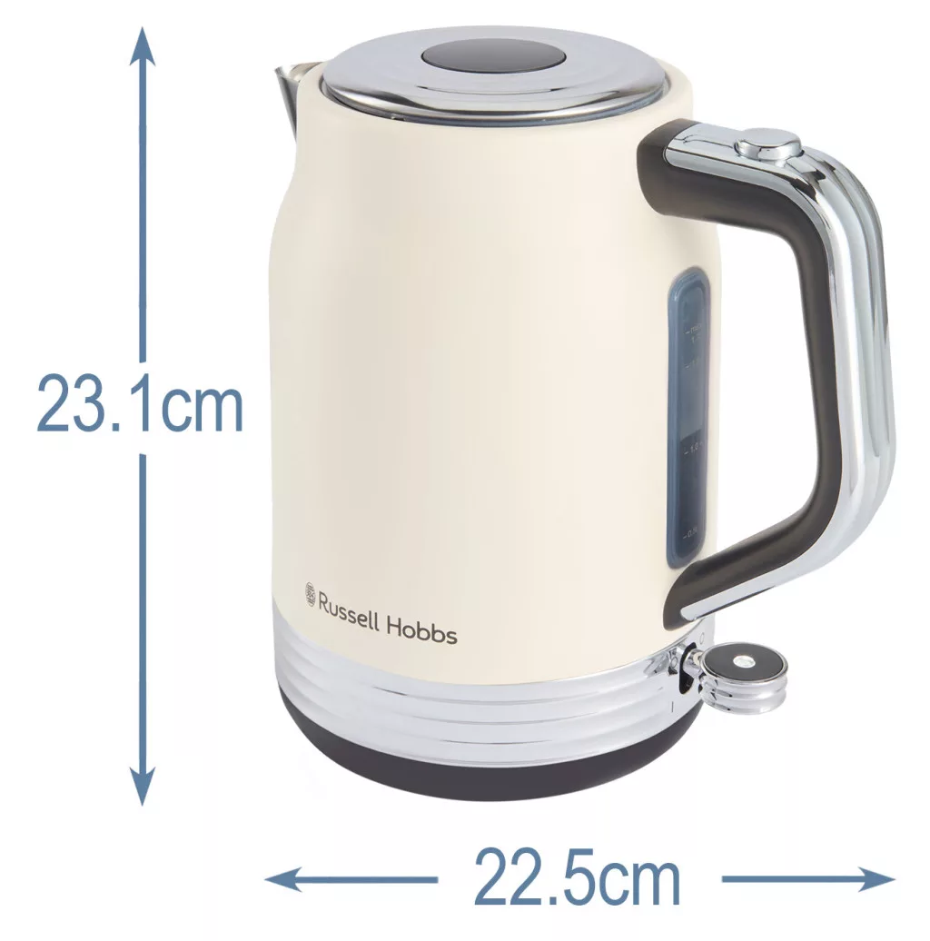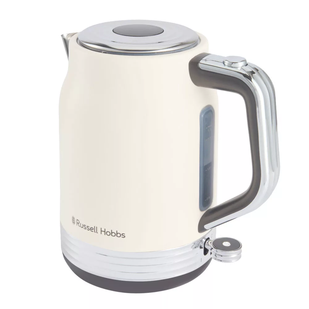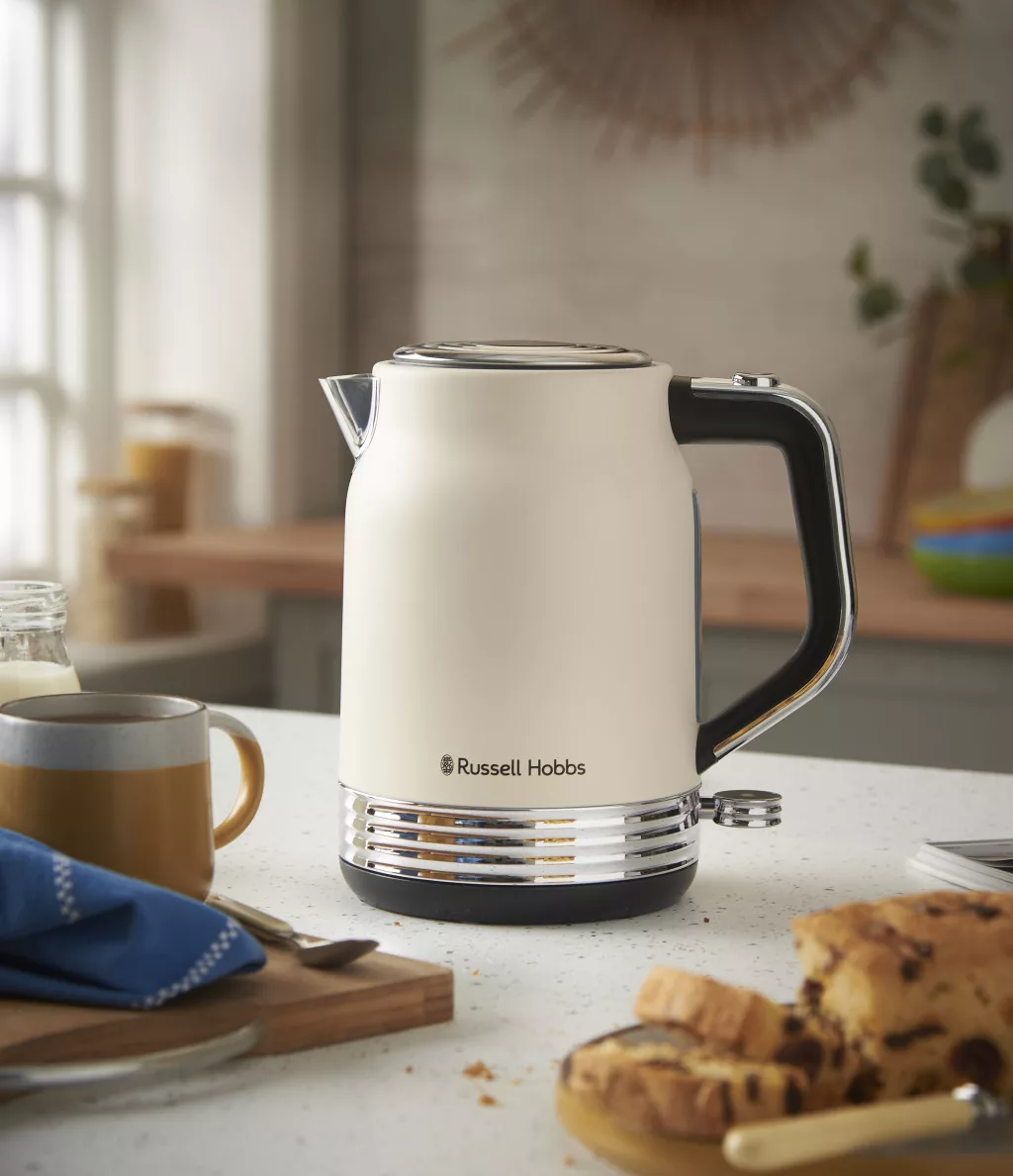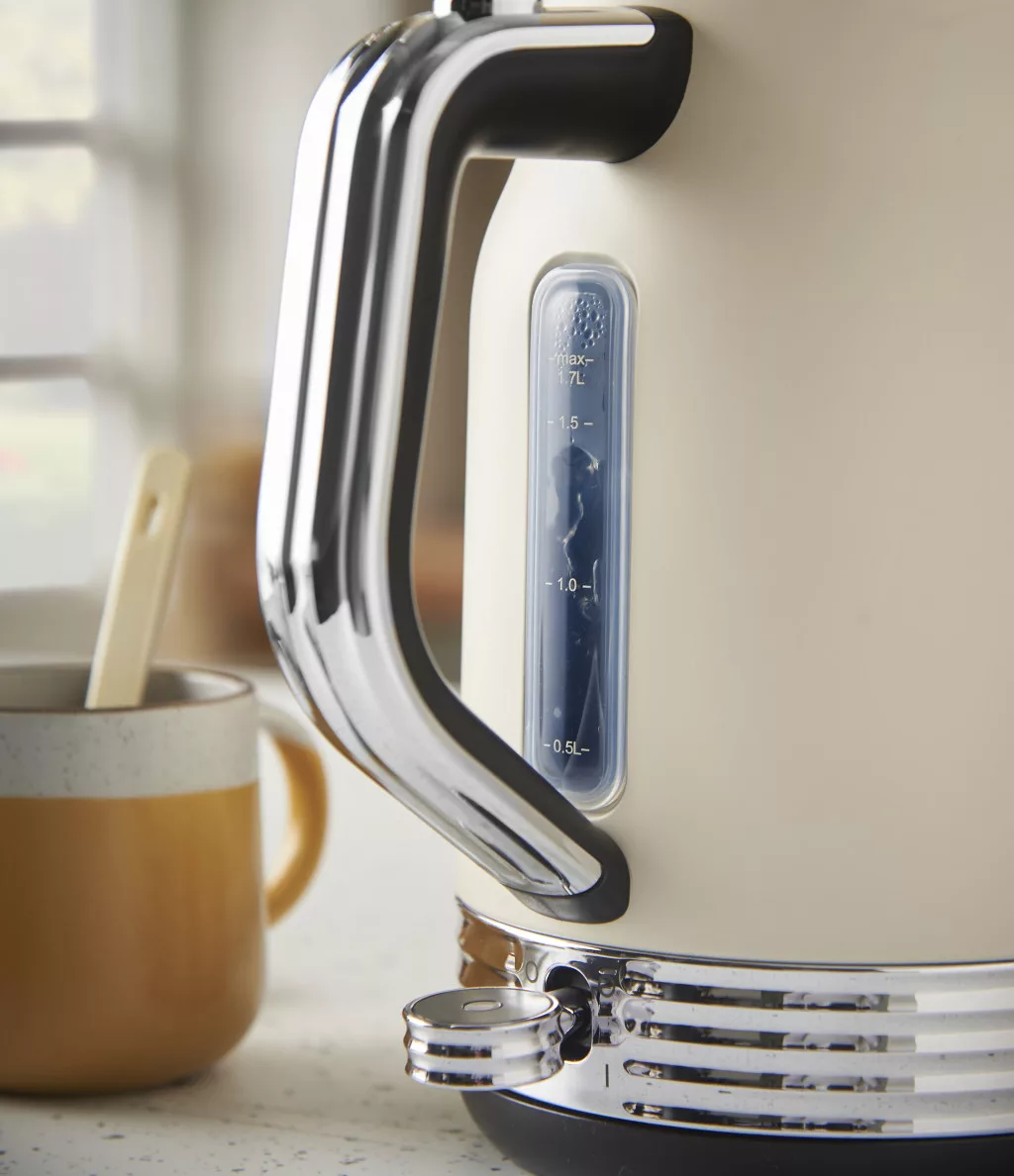 A Russell Hobbs Hanley Jasmine vízforraló elegáns megjelenést kölcsönöz konyhádnak letisztult, matt krém színével és fényes fémes részleteivel. A tökéletes kiöntő, az egykezes, gombnyomásra nyíló fedél, valamint a 360°-os alap kábelrendezéssel egyszerűvé és kényelmessé teszik a használatot – akár jobb-, akár balkezes vagy. A kivehető vízkőszűrő segít megőrizni az italok tiszta ízét, a rejtett fűtőelem pedig megkönnyíti a tisztítást. A kábel a talpba tekerhető, így mindig rendezett marad a munkapult.